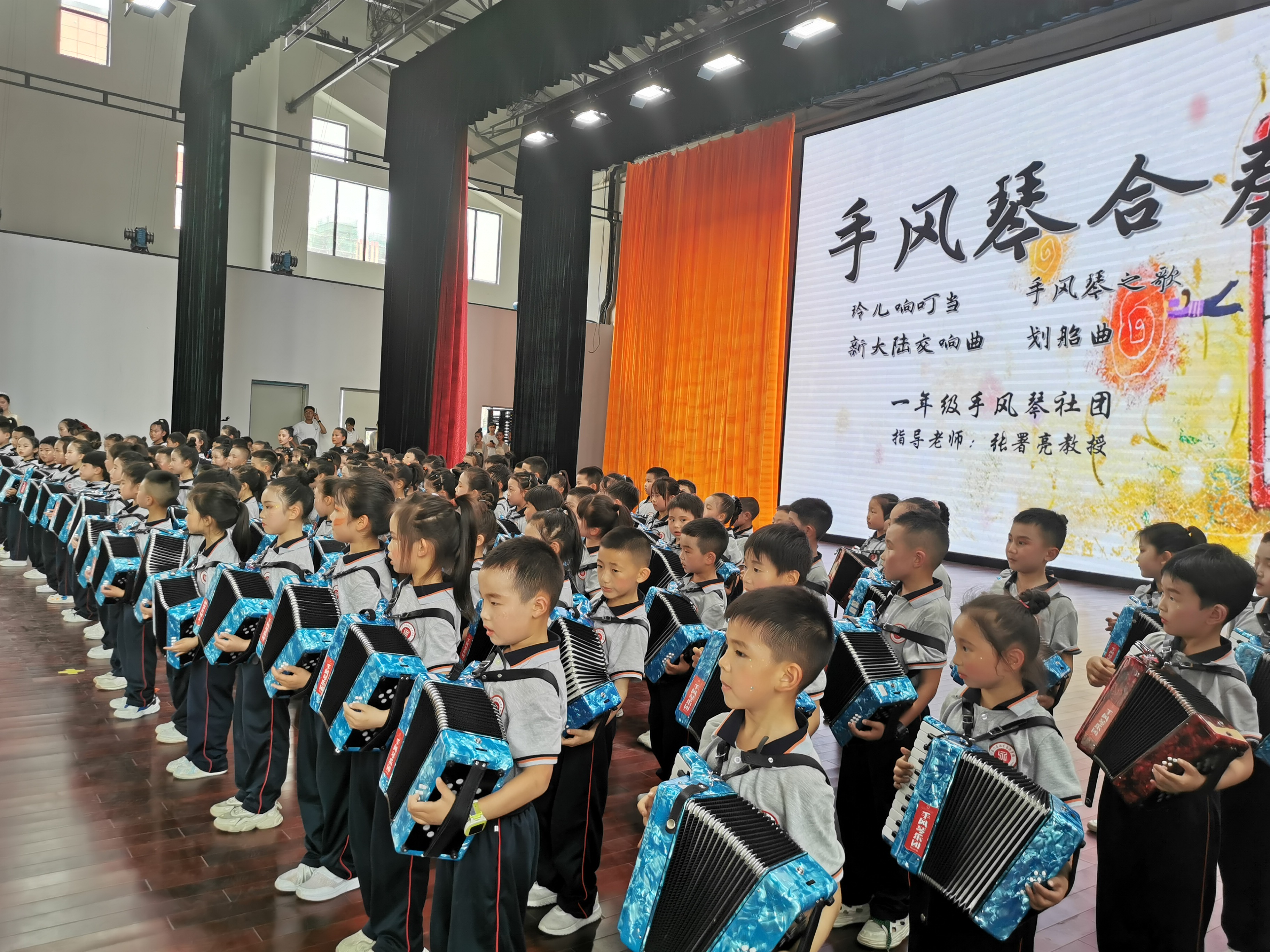 捐贈儀式結束后,湘佳永興學校128名手風琴樂團團員現場進行了匯報演出。
